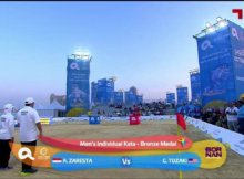 ANOC World Beach Games 2019 Doha, Qatar Male Senior Kata Bronze Medal Match Red: Ahmad Zaresta (Indonesia)- Anan Dai Blue: Gakuji Tozaki (USA)- Ohan Dai