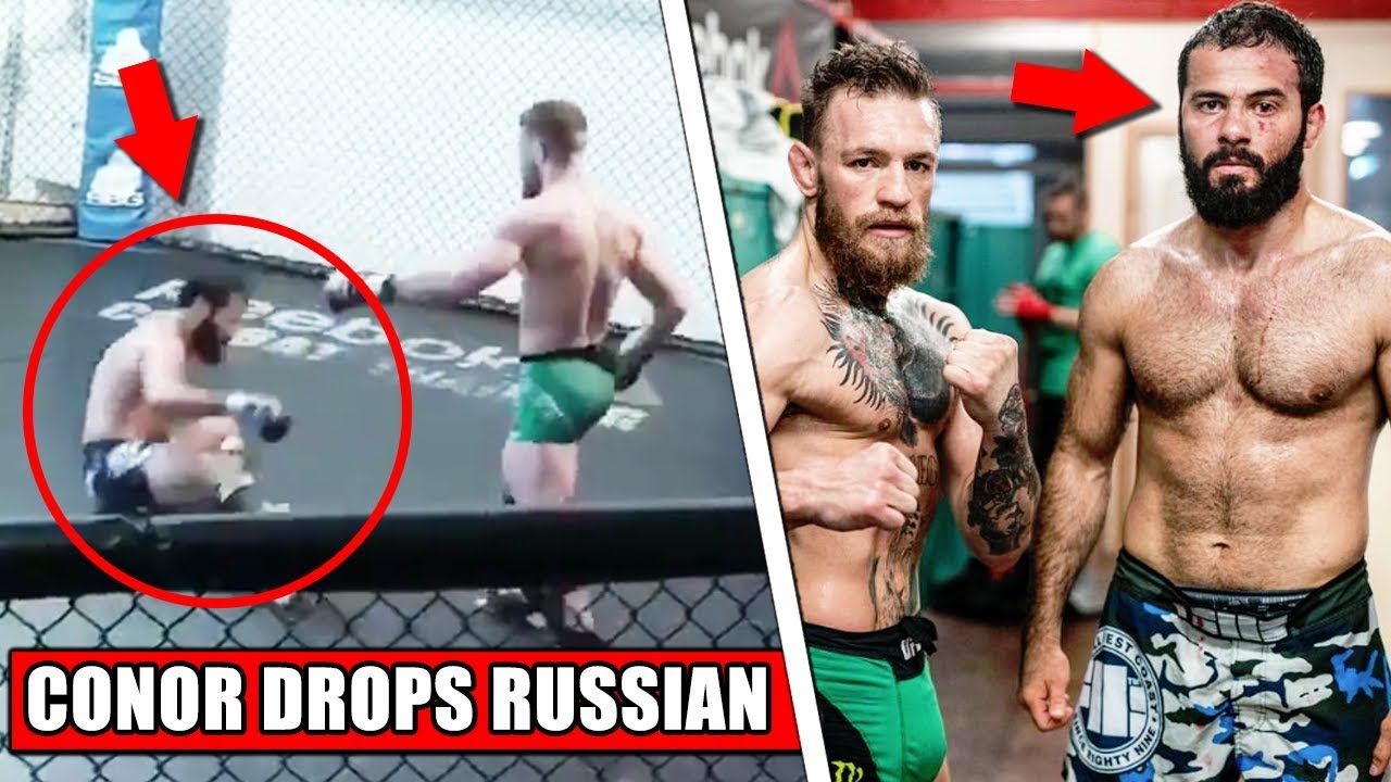 Conor McGregor drops Russian competing partner in current training video– the other day Conor McGregor released a mosaic of training highlights showing him plan for his upcoming bout with Khabib at UFC 229. In the video Conor could be seen going down one sparring companion whose name is Ayub Magomadov – Magomadov is a MMA fighter and also BJJ blackbelt from Grozny, Russia.