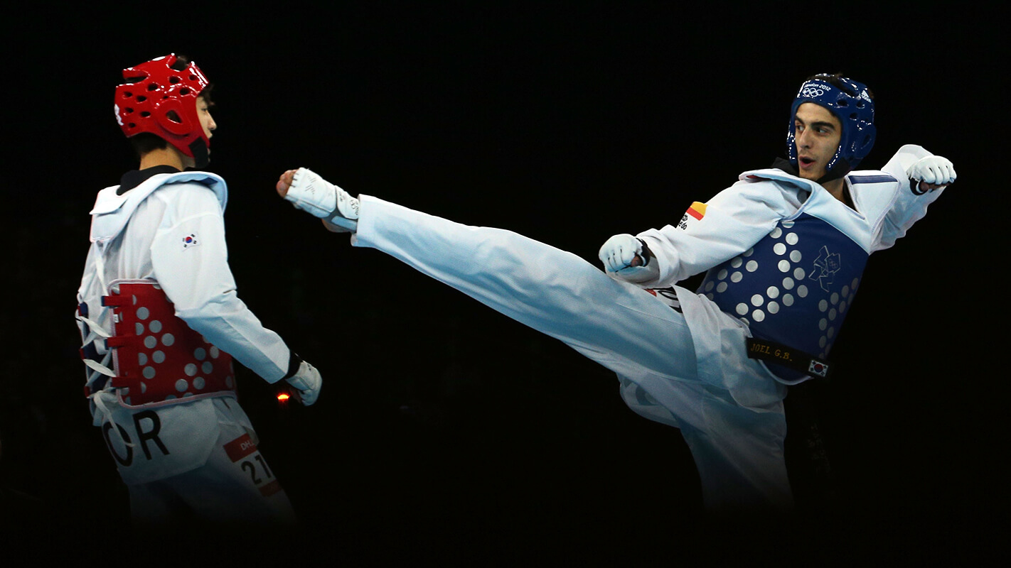 LONDON, ENGLAND – AUGUST 08: Joel Gonzalez Bonilla of Spain competes against Daehoon Lee (L) of Korea during the Men’s -58kg Taekwondo Final match on Day 12 of the London 2012 Olympic Games at ExCeL on August 8, 2012 in London, England. (Photo by Hannah Peters/Getty Images) Check out more