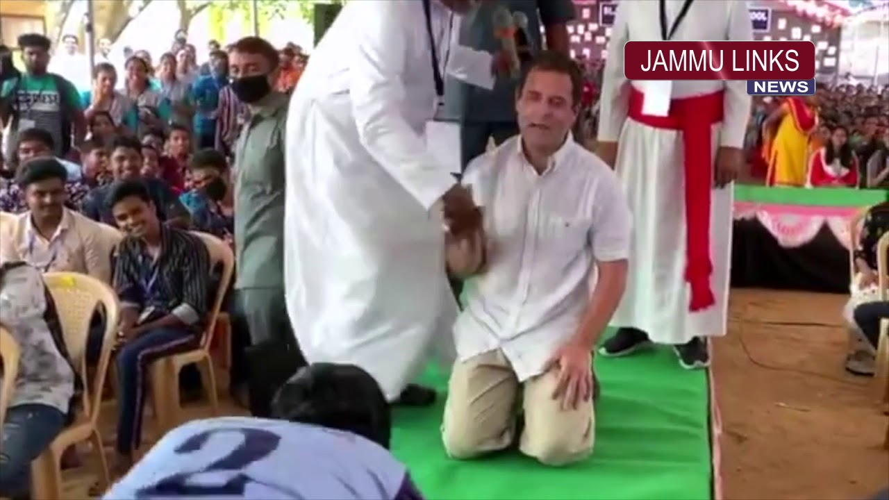 Congress leader Rahul Gandhi, who is on a political election campaign route in Tamil Nadu, drank his legs and also did a couple of push-ups with school trainees in Kanyakumari on Monday.