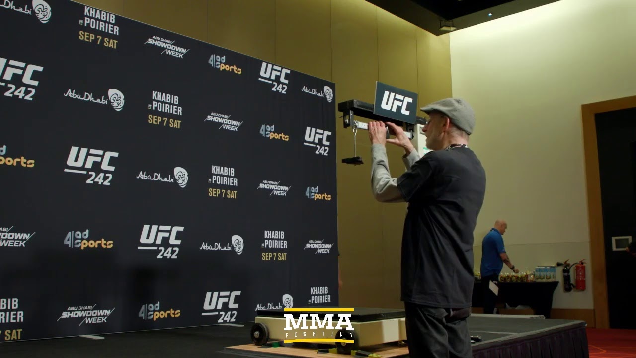 At the UFC 242 weigh-ins, watch UFC 242 boxers hit the scale Friday in Abu Dhabi. Khabib Nurmagomedov and Dustin Poirier will certainly need to hit 155 extra pounds to make the UFC 242 centerpiece official.
